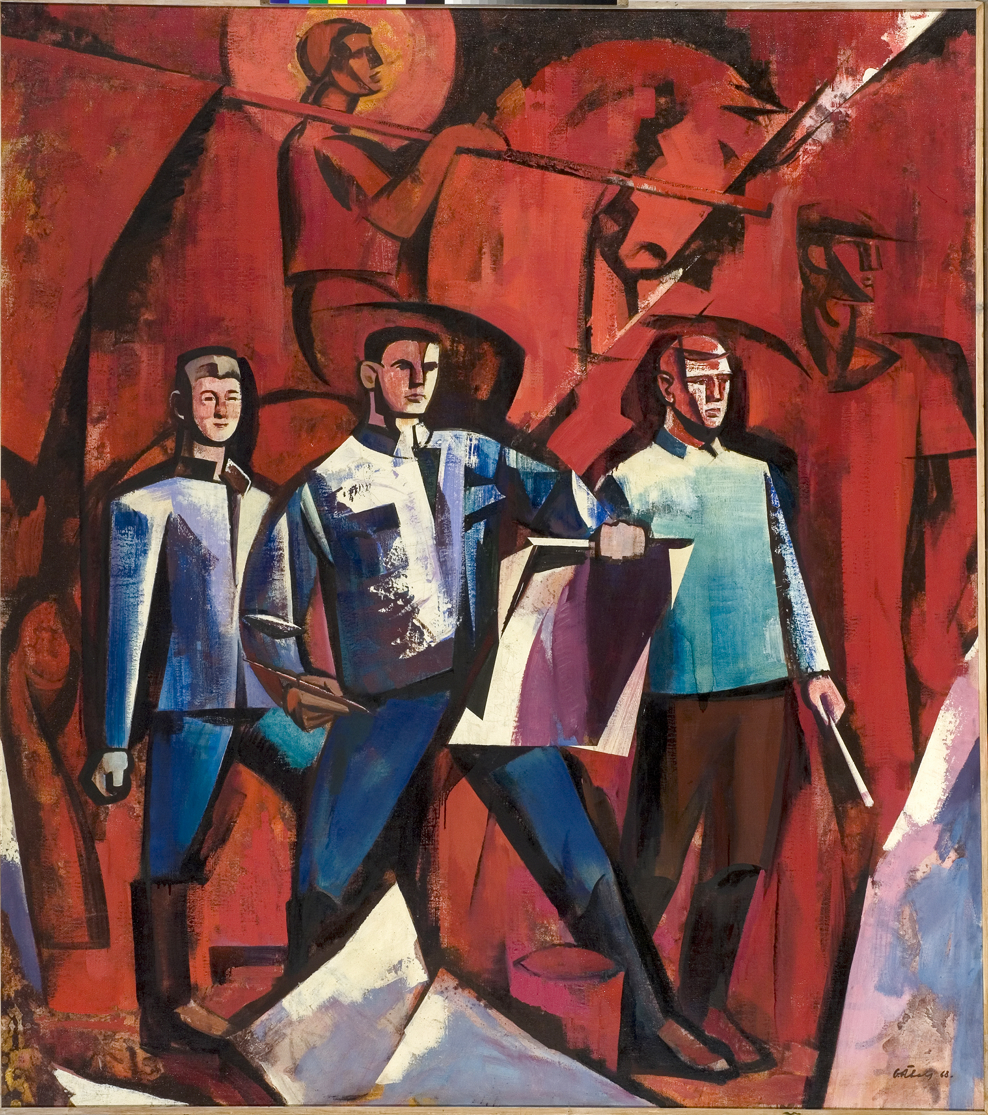 Ojārs Ābols. Prolets ved sauli. Latviešu mākslinieki 1919. gadā. Audekls, eļļa, 225 x 200 cm, 1968. LNMM