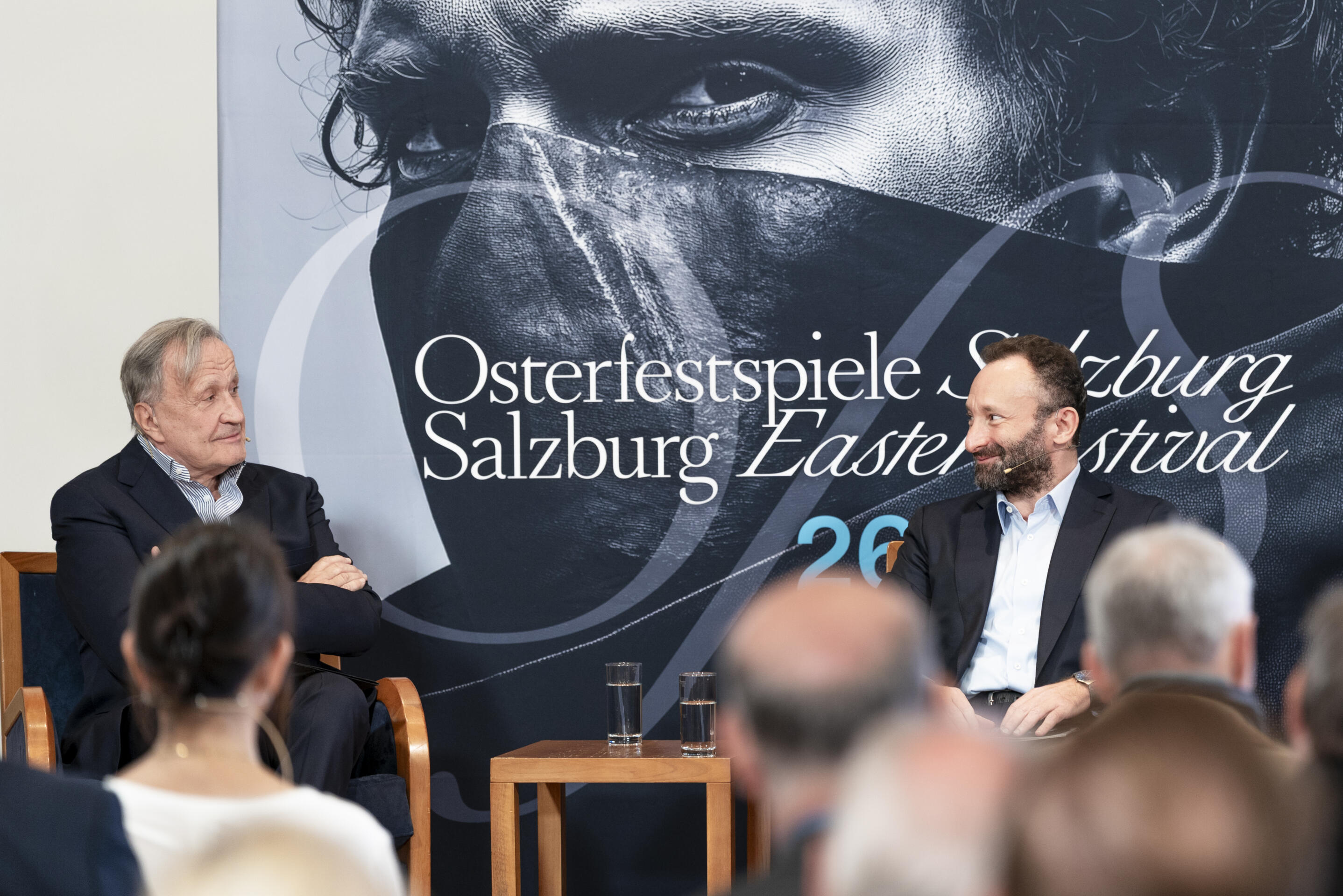 Zalcburgas Lieldienu festivāla intendants Nikolauss Bahlers (no kreisās) un Berlīnes filharmonijas orķestra galvenais diriģents Kirils Petrenko. Foto – Lēna Laine