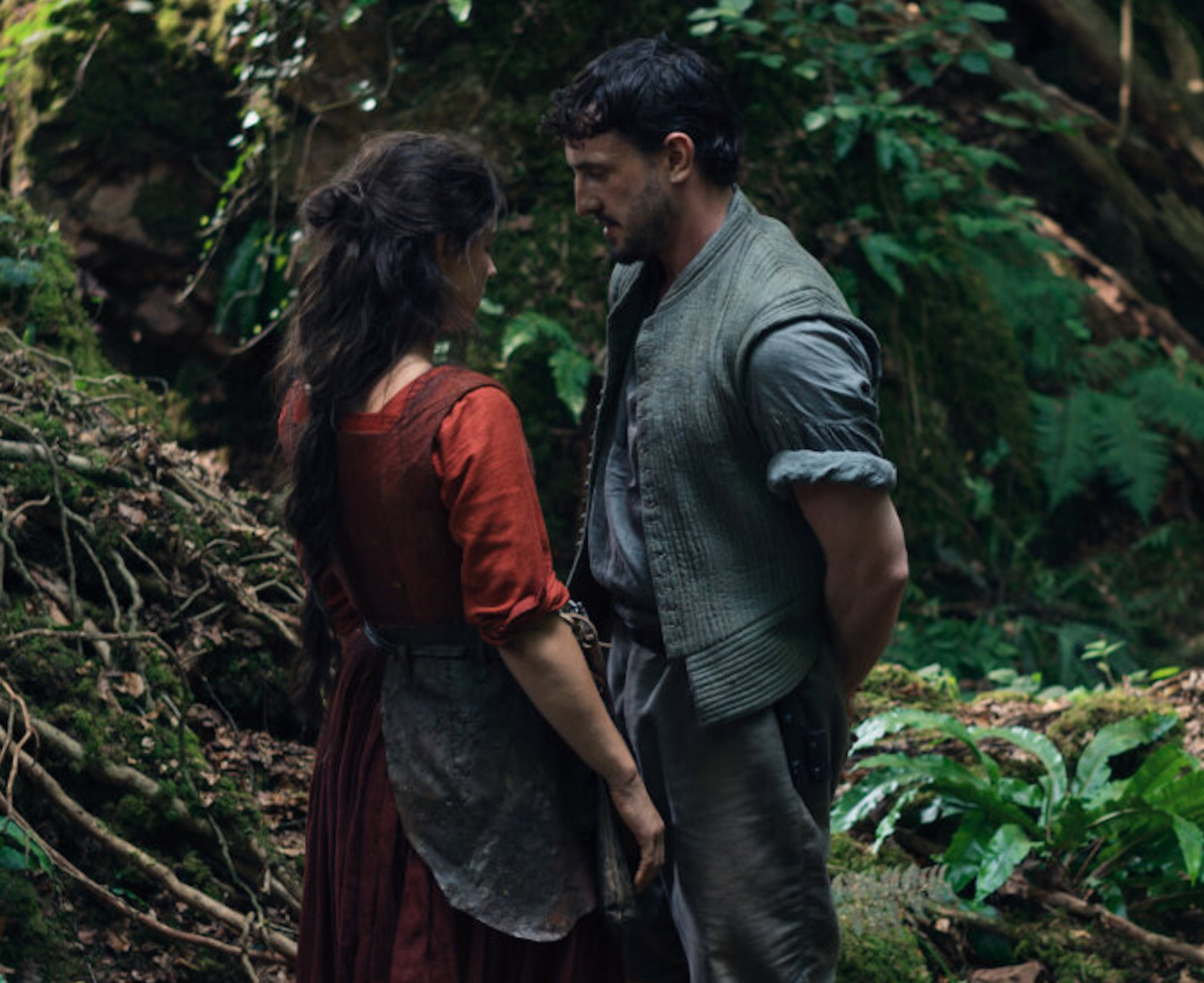 Džesija Baklija un Pols Meskals atveido galvenās lomas vēsturiskajā drāmā Hamnets. Publicitātes foto